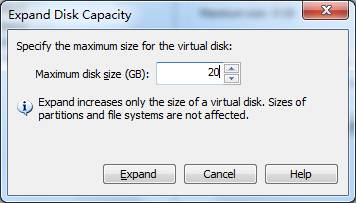 Open virtual machine's settings, select hard disk and click "Utilities" button, and select "Expand":