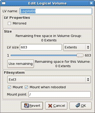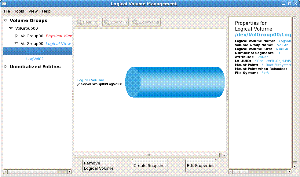 After it is done, select the logVol00 under VolGroup00, then press "Edit Properties" button: