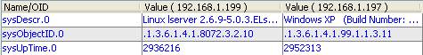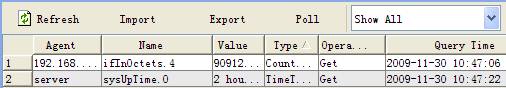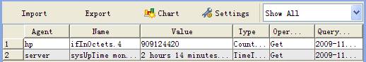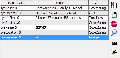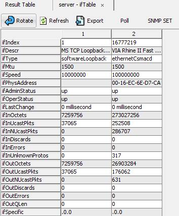 Display the result of SNMP queries in a table. If a octet string is displayed in hex format, double click on it to toggle the display mode.