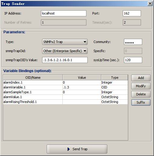 Trap receiver and watches functions run as a system service. Watches function supports action, which means you can configure actions (sending emails or traps) when a MIB object's value violates a pre-configured threshold.